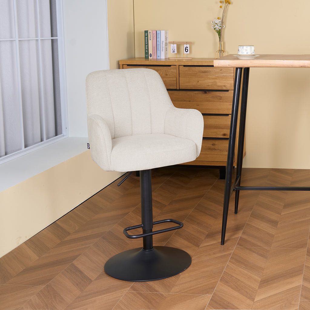 El Banco Alto Amsterdam eleva la experiencia en cualquier barra o desayunador gracias a su diseño contemporáneo y su funcionalidad intuitiva. Su asiento giratorio de 360° y su mecanismo de alturas ajustables permiten adaptarlo a distintos espacios y momentos del día, ofreciendo libertad y fluidez en cada uso.