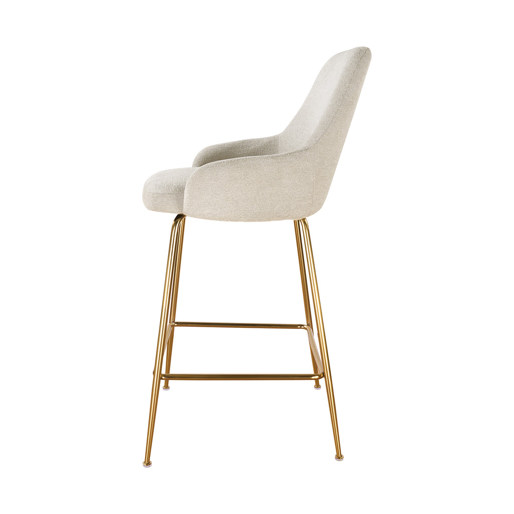 Su respaldo curvado brinda soporte ergonómico, envolviendo la postura con suavidad y creando una experiencia de comodidad que se siente en cada uso. Es un banco pensado para disfrutar largos momentos, desde desayunos tranquilos hasta reuniones prolongadas.