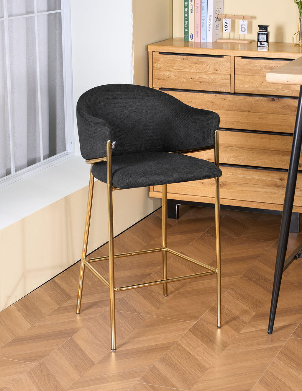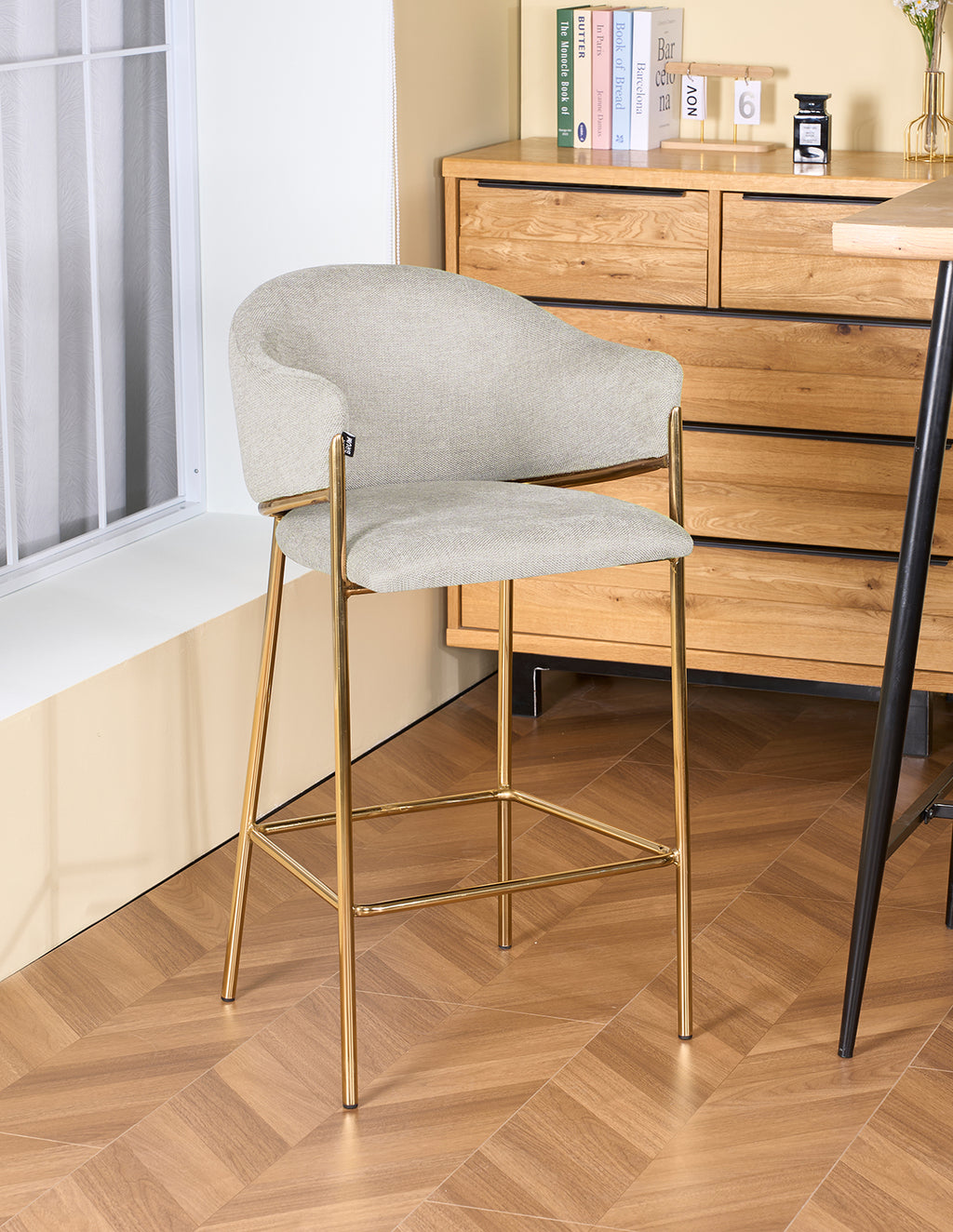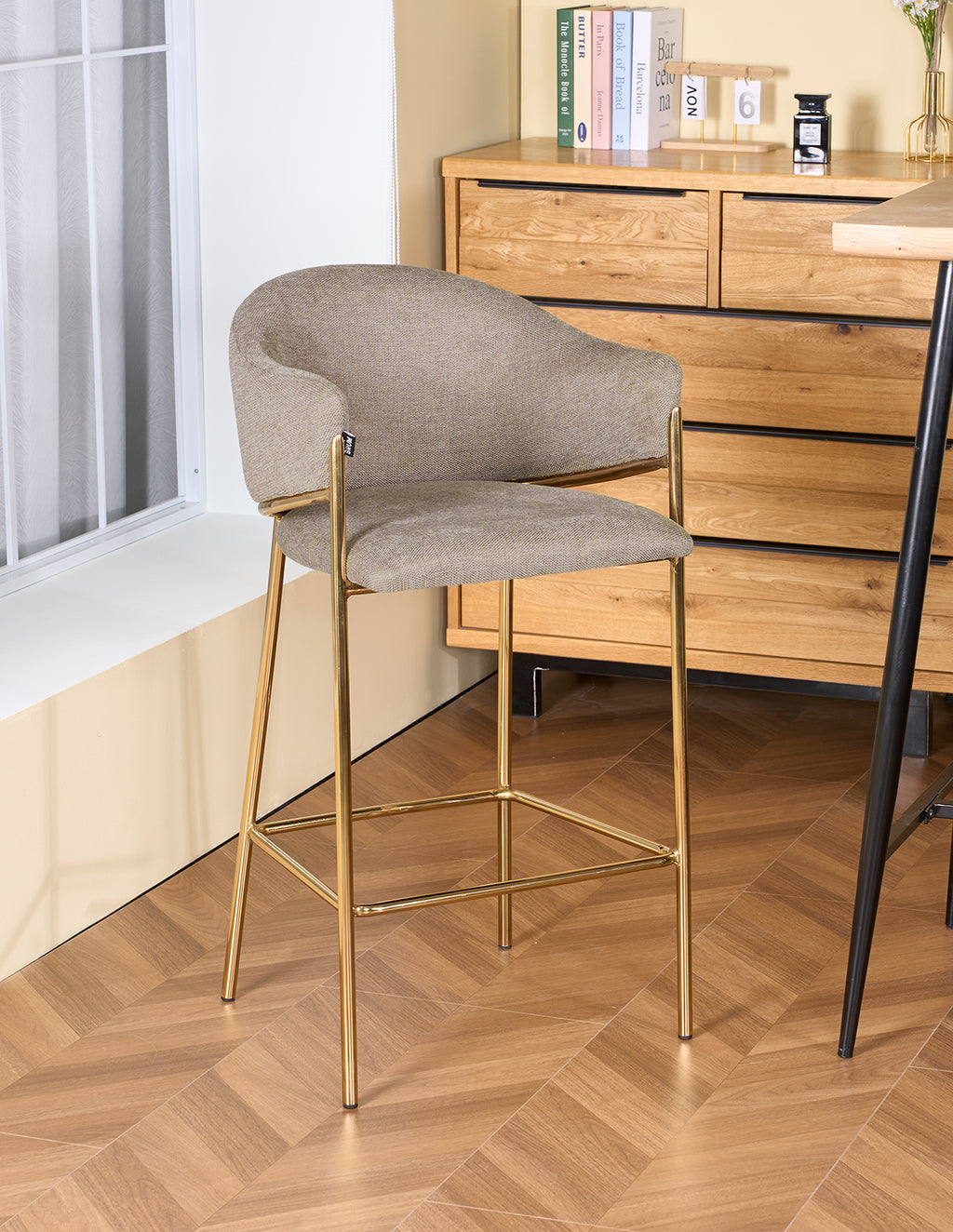 El Banco Berlín redefine la estética moderna con una silueta limpia y proporciones equilibradas. Su estructura metálica en acabado dorado refleja la luz con sutileza, llenando la barra o cocina de un brillo sofisticado y contemporáneo.