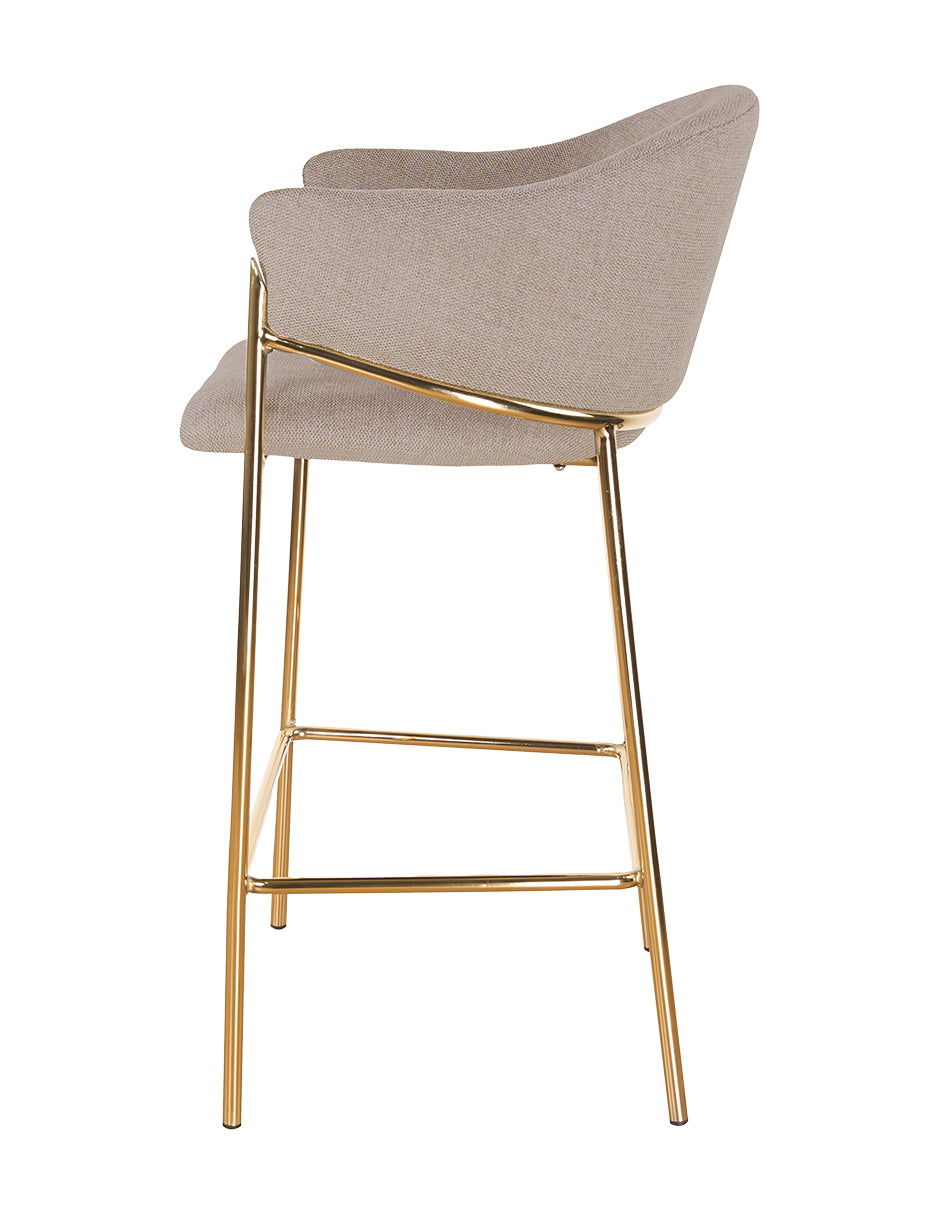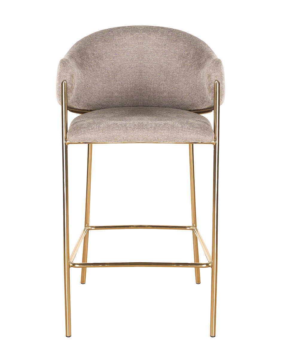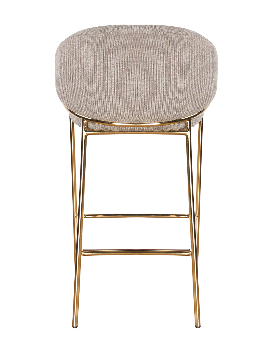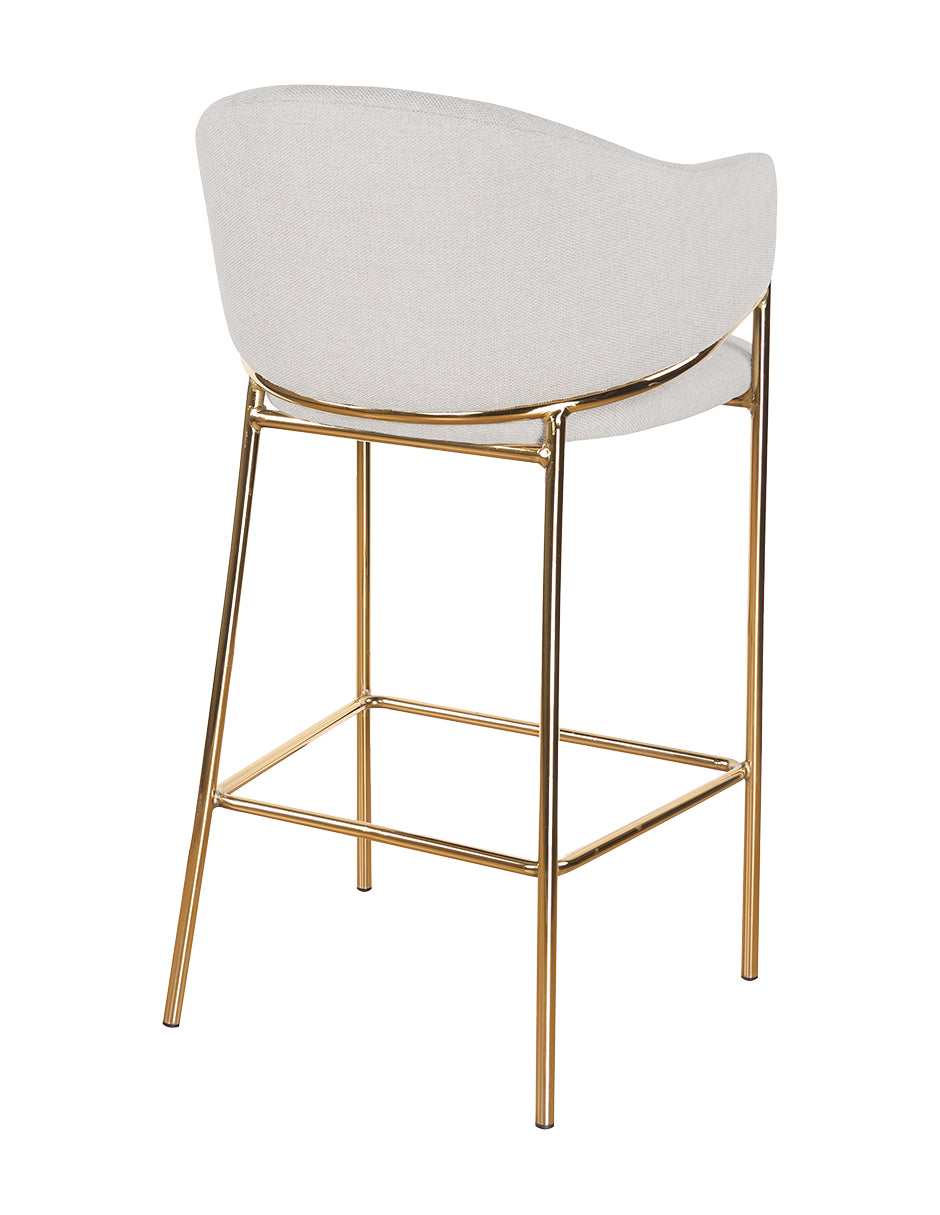 El Banco Berlín redefine la estética moderna con una silueta limpia y proporciones equilibradas. Su estructura metálica en acabado dorado refleja la luz con sutileza, llenando la barra o cocina de un brillo sofisticado y contemporáneo.