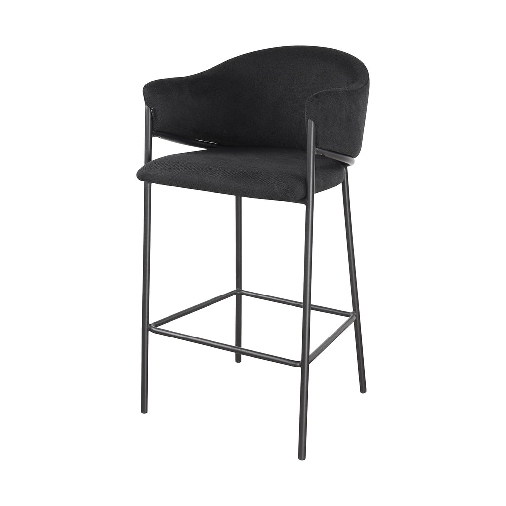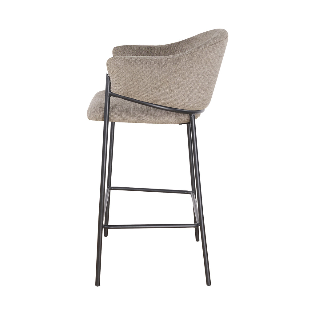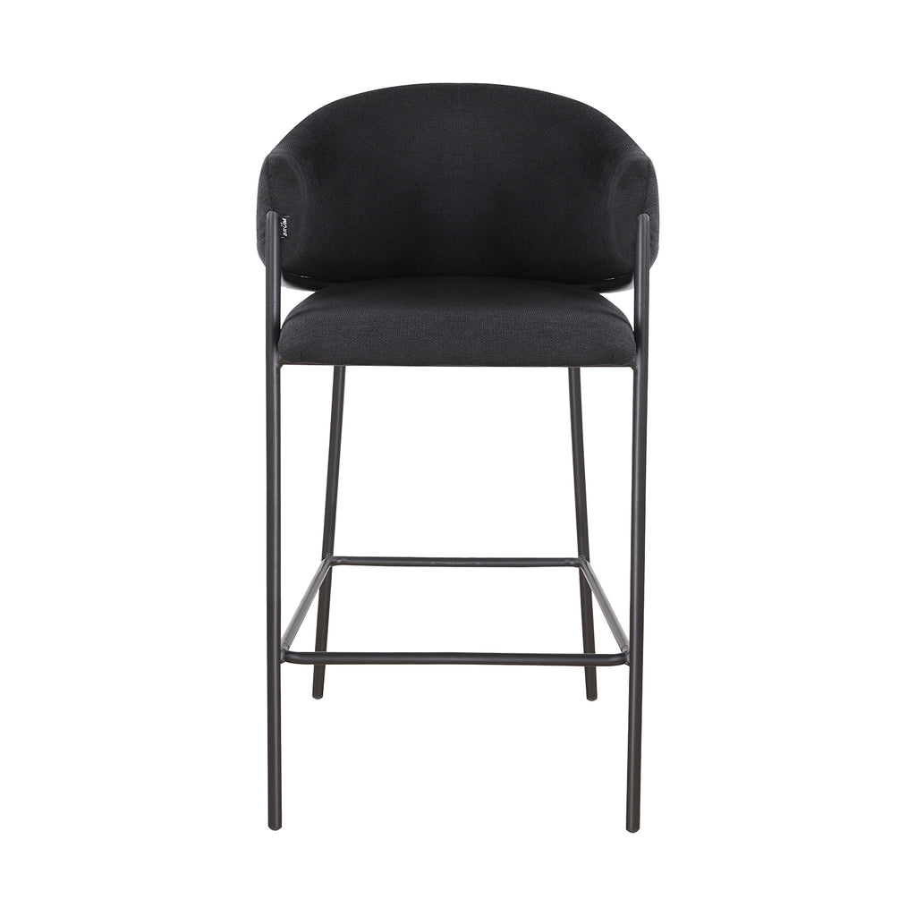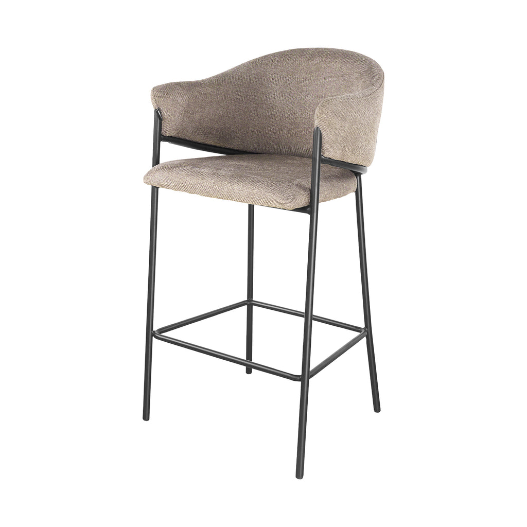 El asiento tapizado ofrece una textura suave y agradable, ideal para disfrutar momentos largos en la barra o la cocina. Su forma estilizada alarga visualmente el espacio y aporta una sensación de armonía que complementa tanto interiores modernos como ambientes industriales o minimalistas.