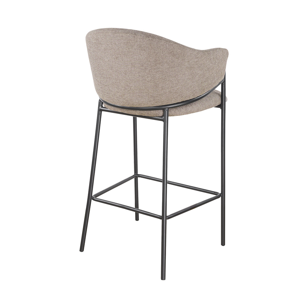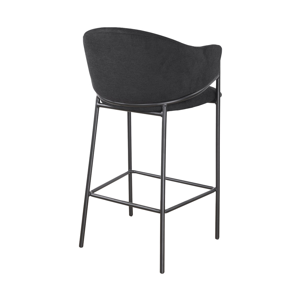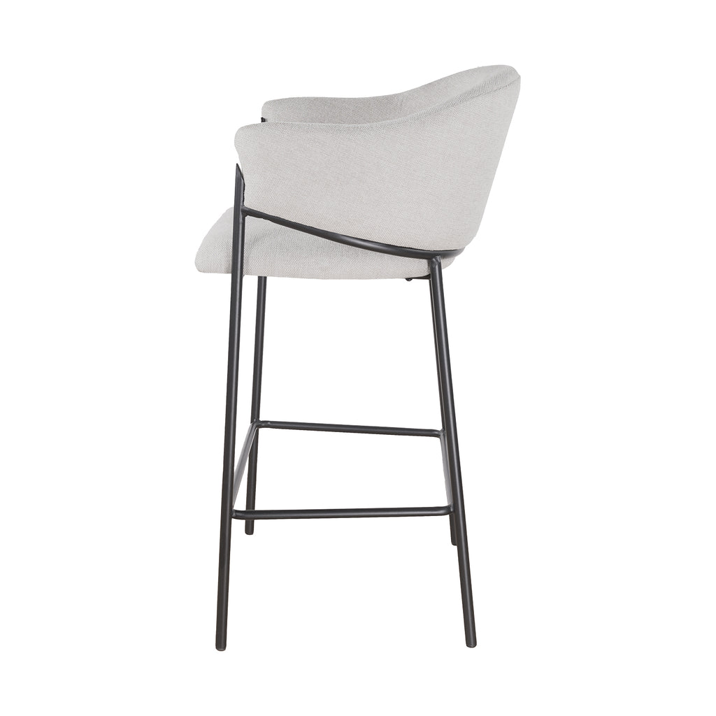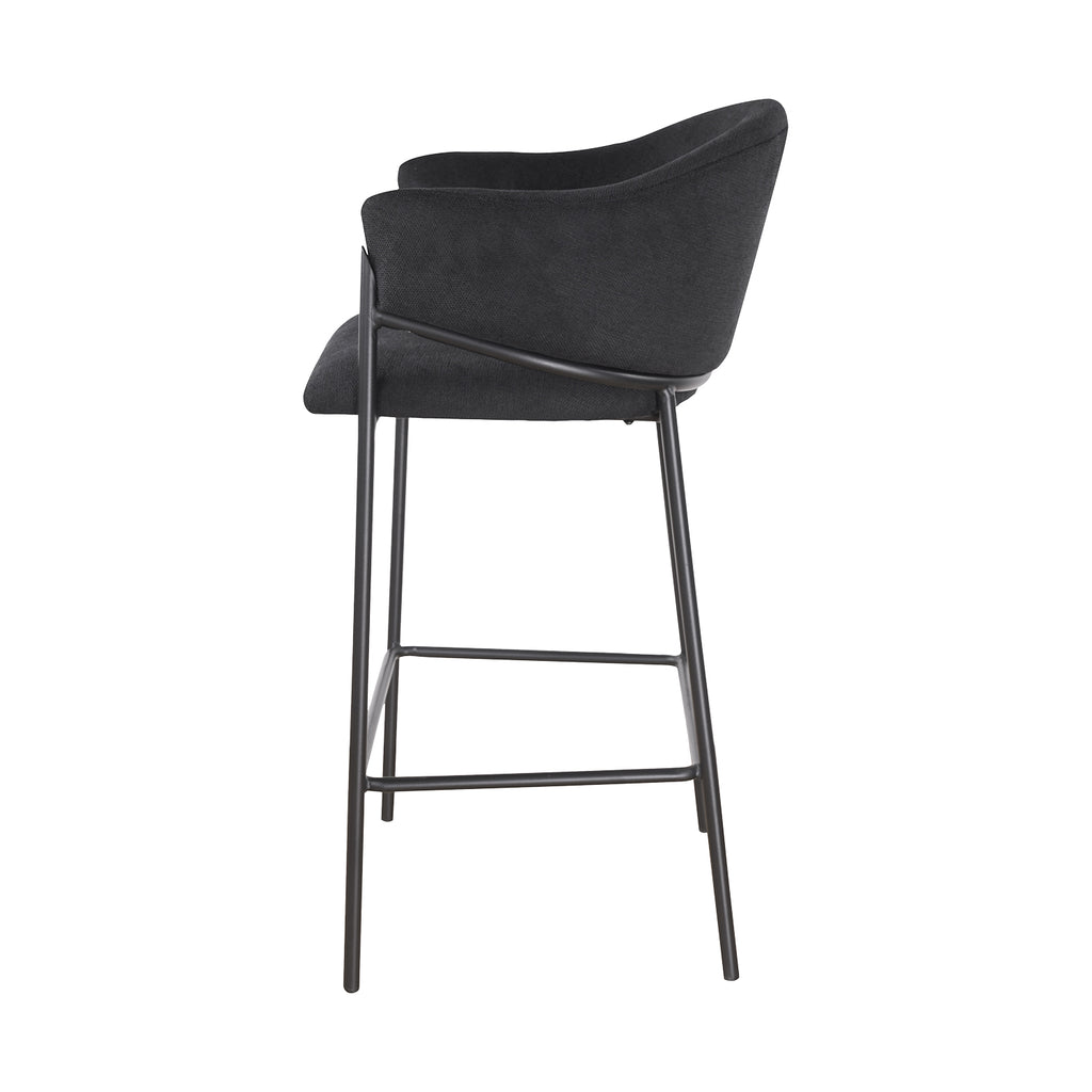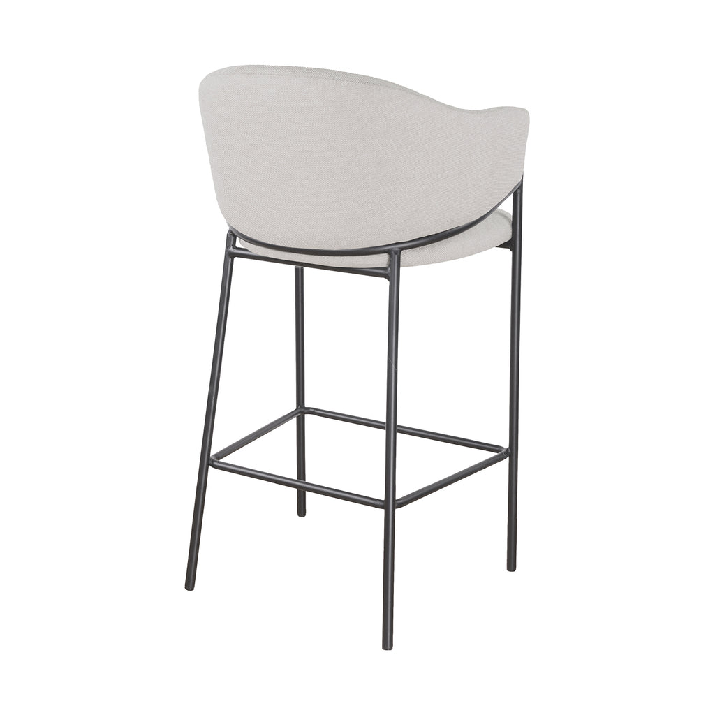 El asiento tapizado ofrece una textura suave y agradable, ideal para disfrutar momentos largos en la barra o la cocina. Su forma estilizada alarga visualmente el espacio y aporta una sensación de armonía que complementa tanto interiores modernos como ambientes industriales o minimalistas.