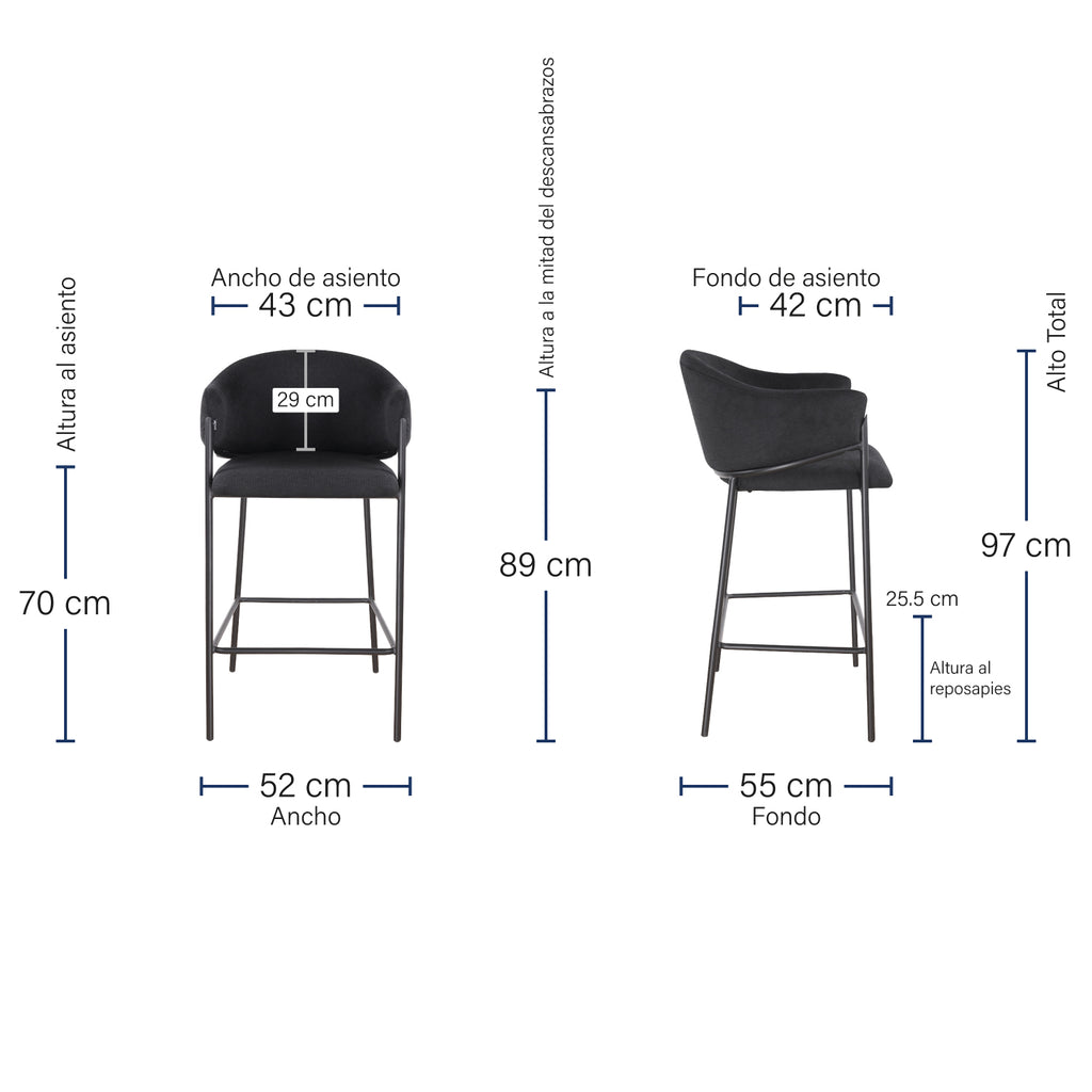 Gracias a su mezcla de base negra y acabados suaves, el Banco Berlín se vuelve una pieza versátil, capaz de añadir carácter sin saturar. Su estética limpia y contemporánea lo convierte en un aliado perfecto para elevar la estética de cualquier barra, isla o área social.