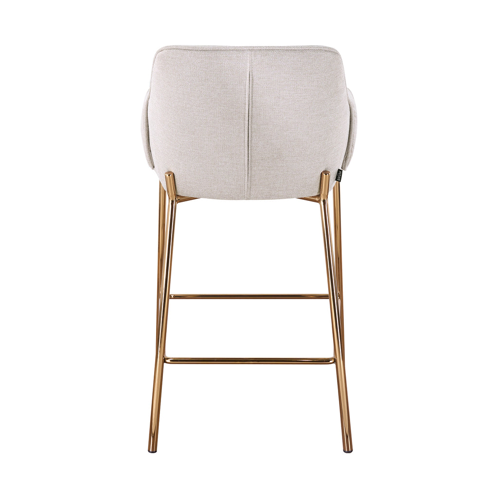 La estructura metálica con acabado dorado arenado añade un toque sofisticado que ilumina el espacio y eleva la atmósfera. Su presencia estilizada aporta equilibrio entre modernidad y calidez, convirtiéndolo en una pieza ideal para barras, comedores o áreas sociales contemporáneas.