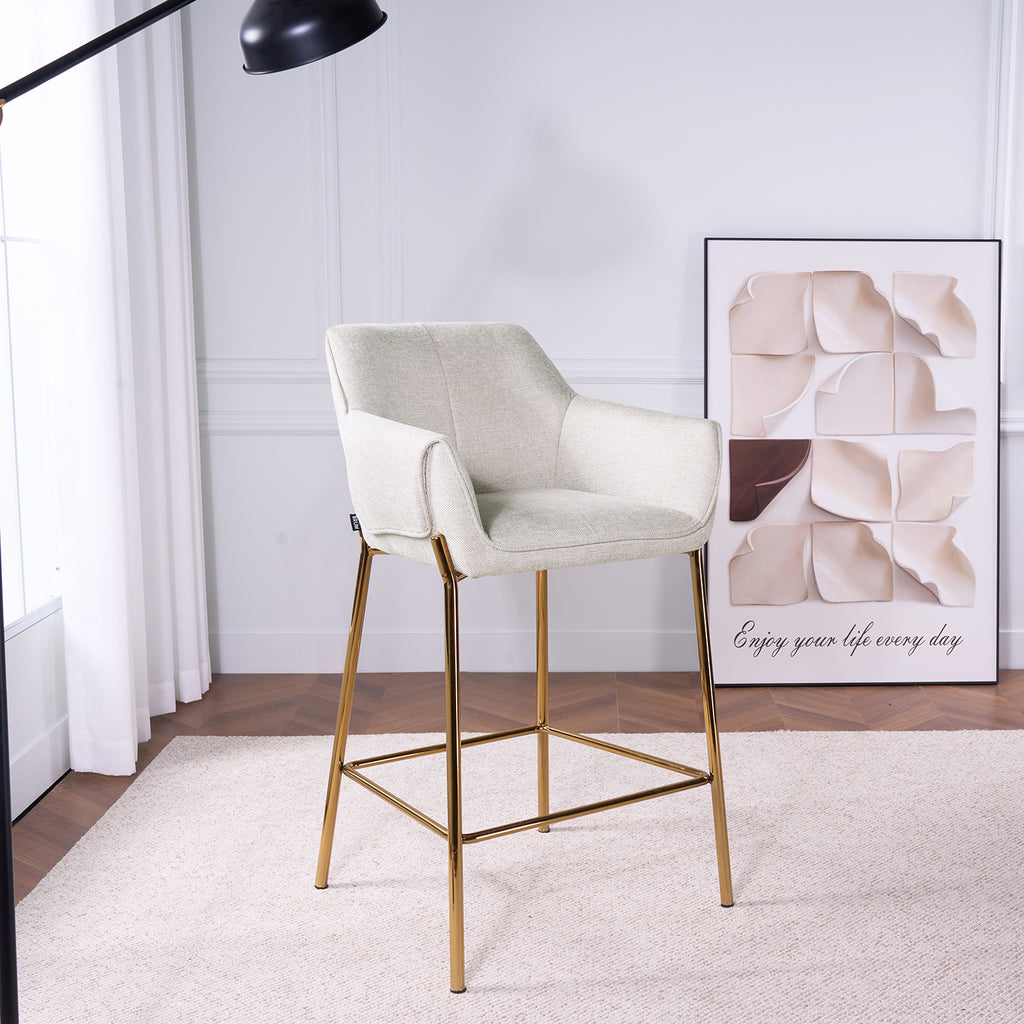 Completa tu espacio con la Silla Toronto Pata Dorada diseñada con el mismo tapizado Belfast y la estructura metálica dorada que distinguen al Banco Toronto. Juntas, ambas piezas crean una estética armoniosa, moderna y sofisticada que transforma cualquier comedor o barra con un estilo unificado y lleno de luz.