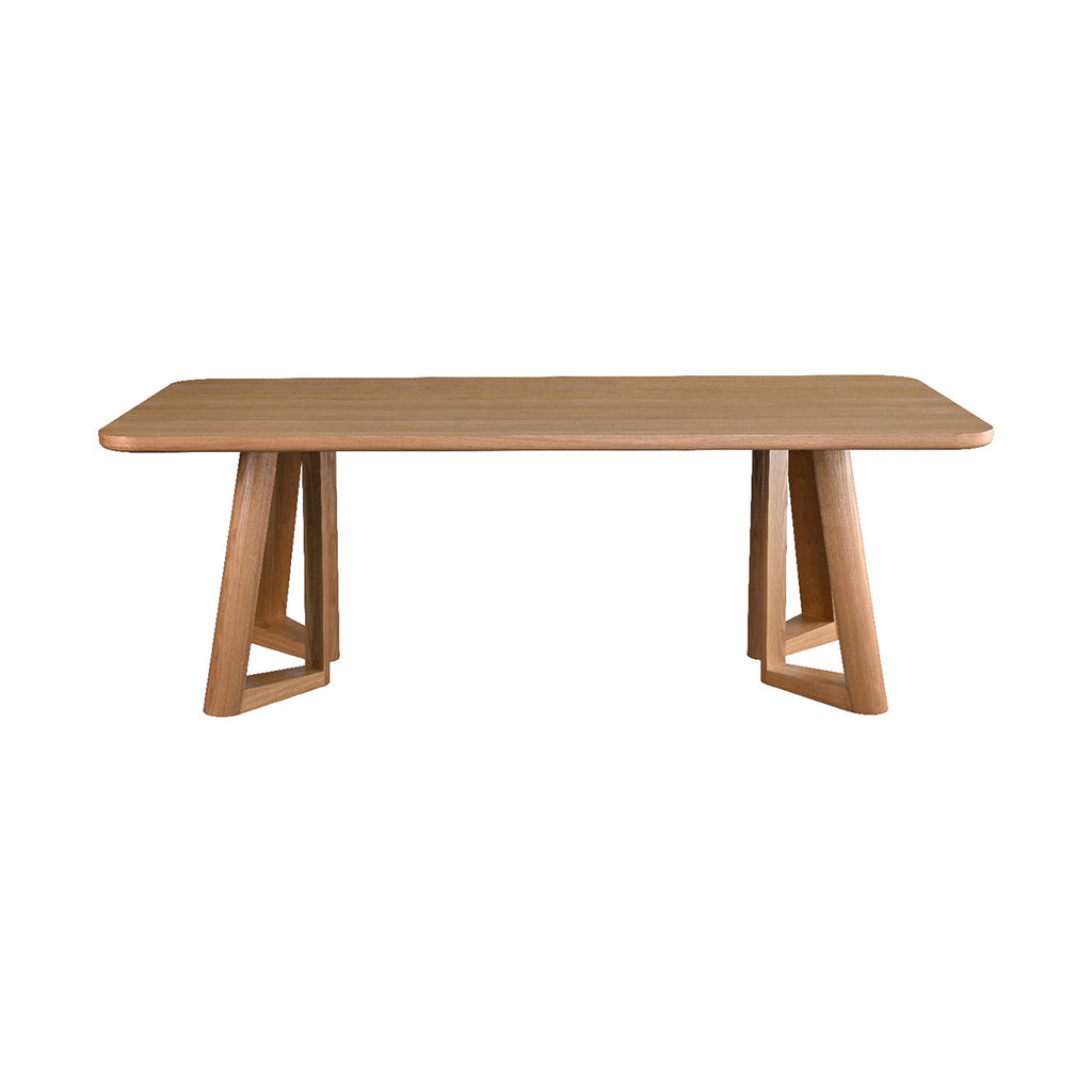 Sus patas angulares de corte preciso y su estructura sólida evocan un carácter arquitectónico que aporta estabilidad y protagonismo. Su cubierta con acabado de alta calidad resalta la belleza natural de la madera, convirtiendo a la Jaipur en el corazón visual de cualquier comedor contemporáneo.