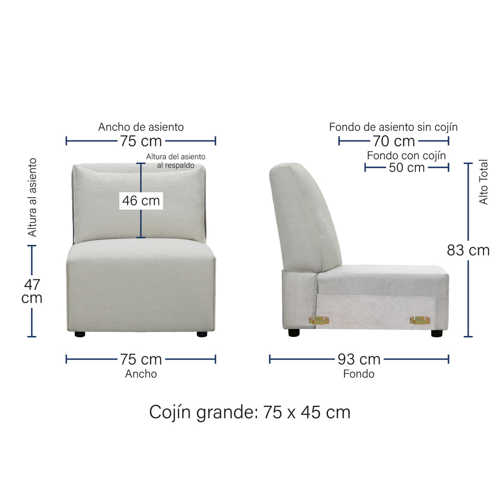 Dimensiones Generosas: Ofrece amplio espacio para sentarse cómodamente.