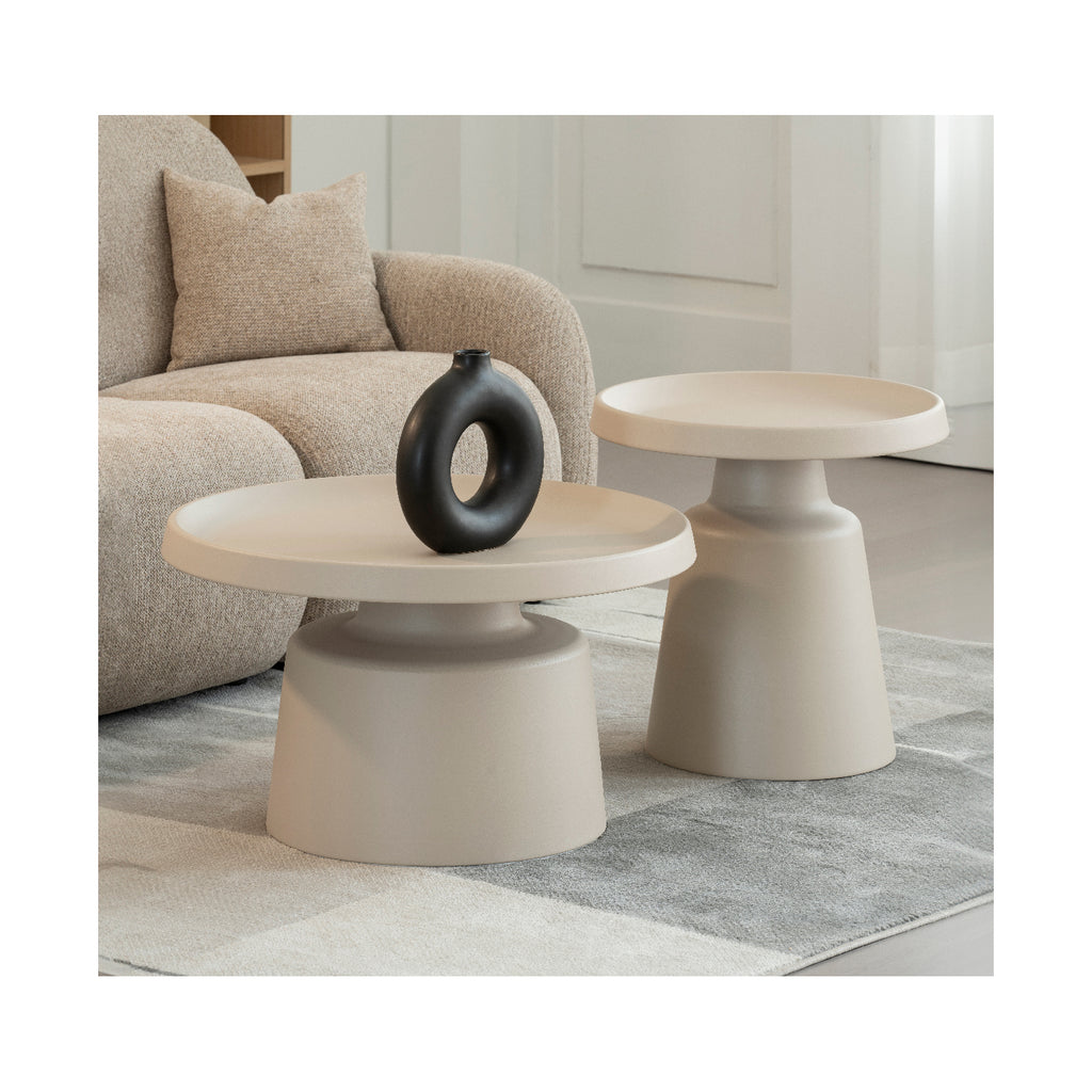 El set de 2 mesas de centro Sintra es la combinación perfecta de funcionalidad y estilo contemporáneo. Con diferentes alturas y diámetros, estas mesas se complementan entre sí para ofrecer practicidad y un diseño único que realza cualquier espacio.