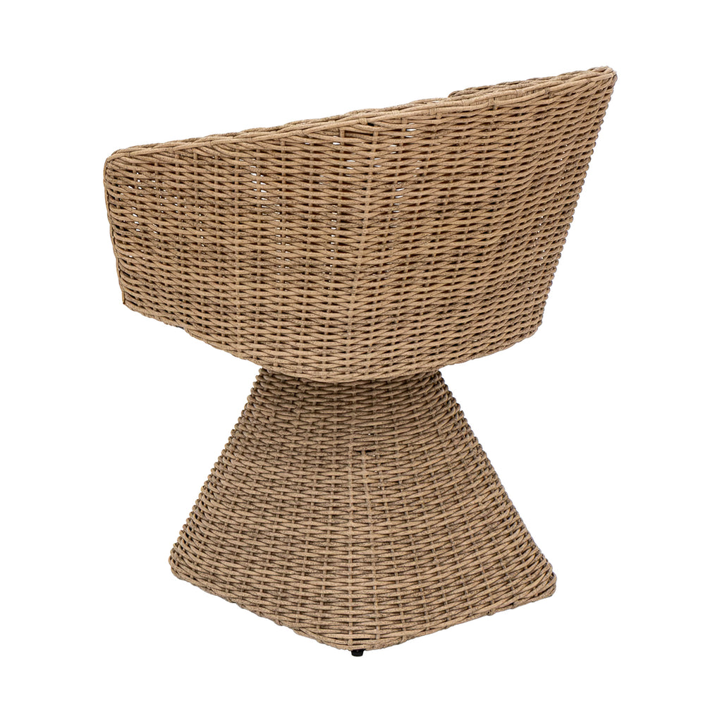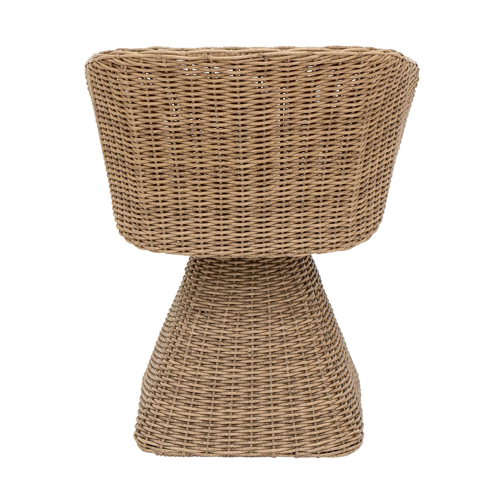 Su asiento amplio con cojín integrado aporta una sensación acogedora desde el primer contacto, mientras que su respaldo curvo genera un apoyo ergonómico ideal para largas sobremesas. Más allá de su estética, está pensada para el uso diario gracias a sus materiales resistentes, fáciles de limpiar y diseñados para conservar su apariencia con el paso del tiempo incluso en exteriores.