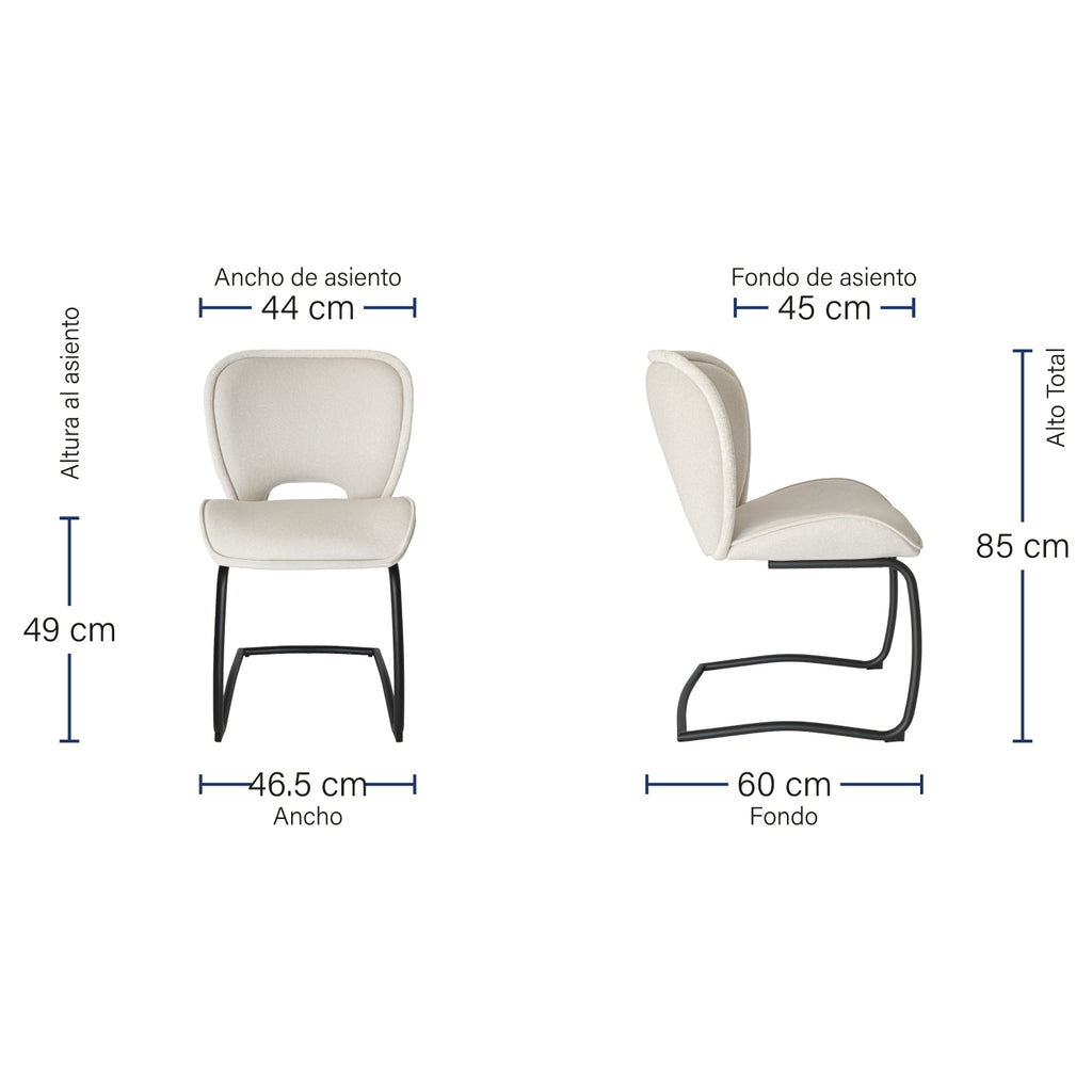El bies acolchado del mismo material, meticulosamente aplicado en los bordes, resalta la atención al detalle y refuerza la sensación de comodidad. Con una capacidad de carga de hasta 120 kg, esta silla es una fusión excepcional de estilo y resistencia.