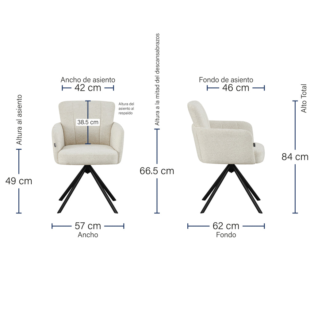 - Altura al Descansabrazos: 66.5 cm