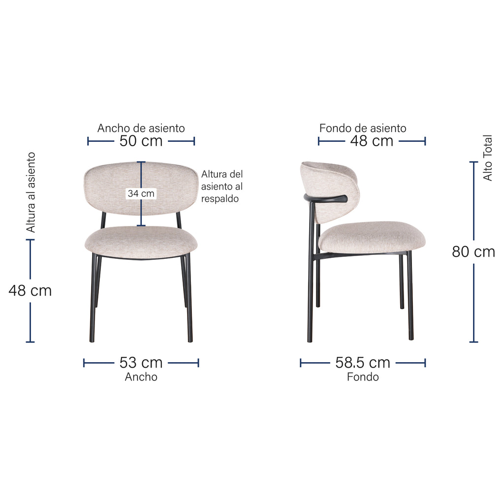 El tapizado en tela Monet brinda una textura suave y durable que se siente acogedora desde el primer contacto. Su asiento y respaldo —ergonómicos y equilibrados— ofrecen comodidad prolongada, ideal para sobremesas largas o momentos de enfoque.