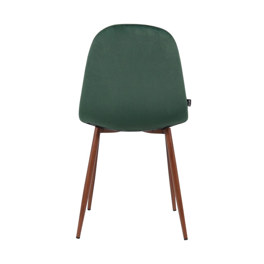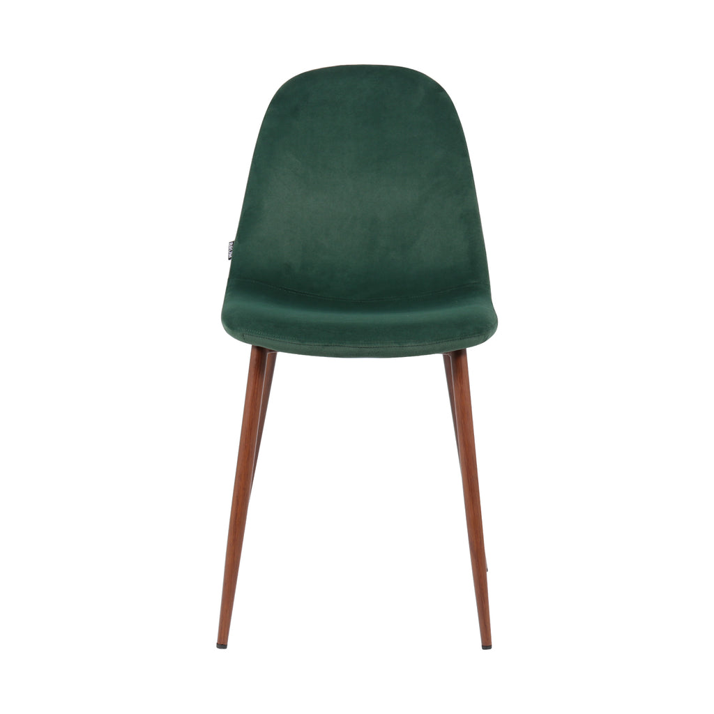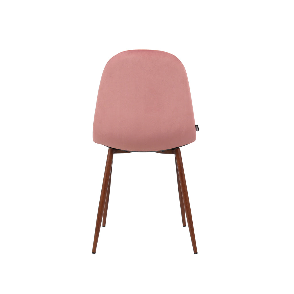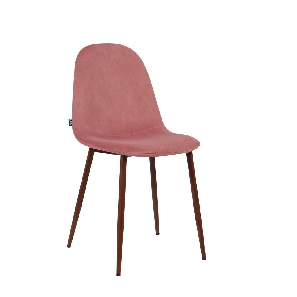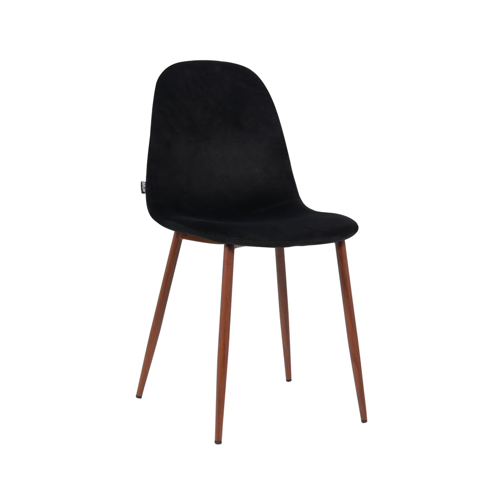 Una robusta estructura de metal en acabado cromado le da a la silla una postura estable. Las patas han sido terminadas en un aspecto madera de nogal.