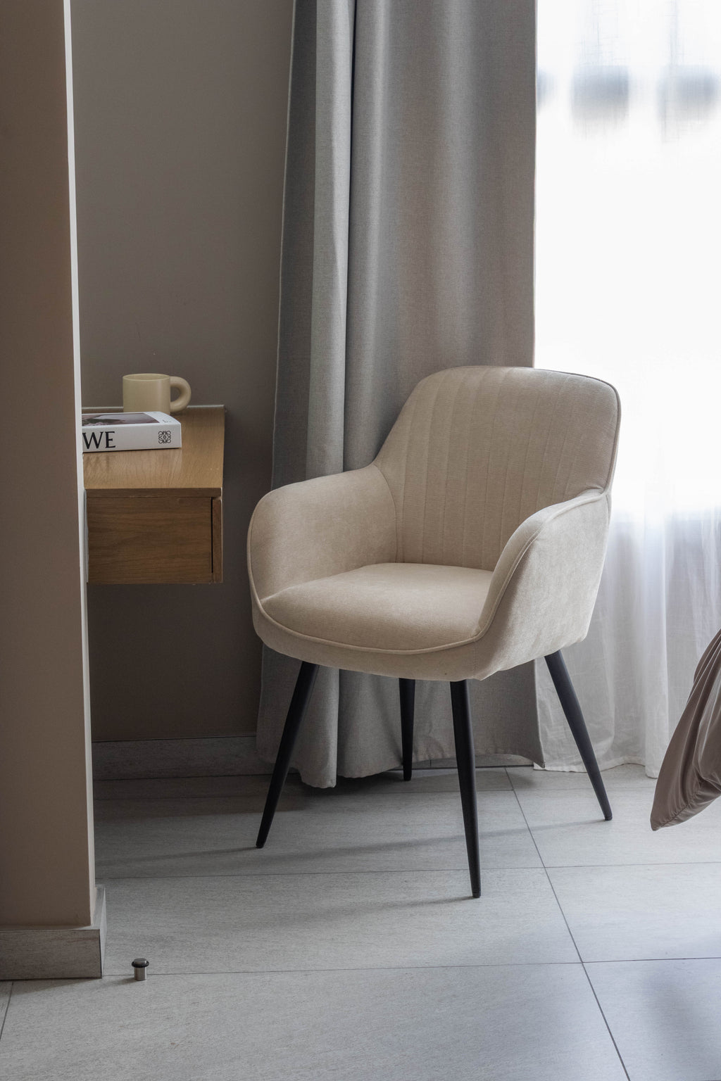 La silla Manchester es increíblemente cómoda. Su diseño ergonómico proporciona un soporte lumbar excepcional y está construida con materiales de alta calidad para garantizar su durabilidad. Sus patas de recubrimiento en polvo arena negra son resistentes y añaden un toque de elegancia.
