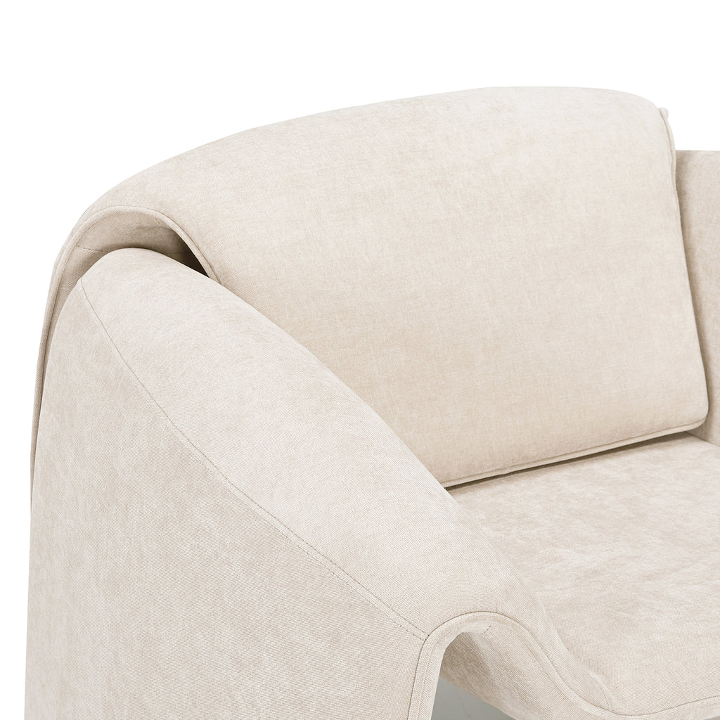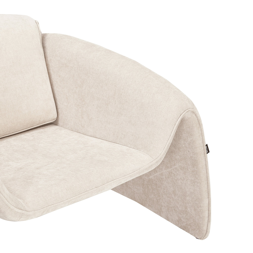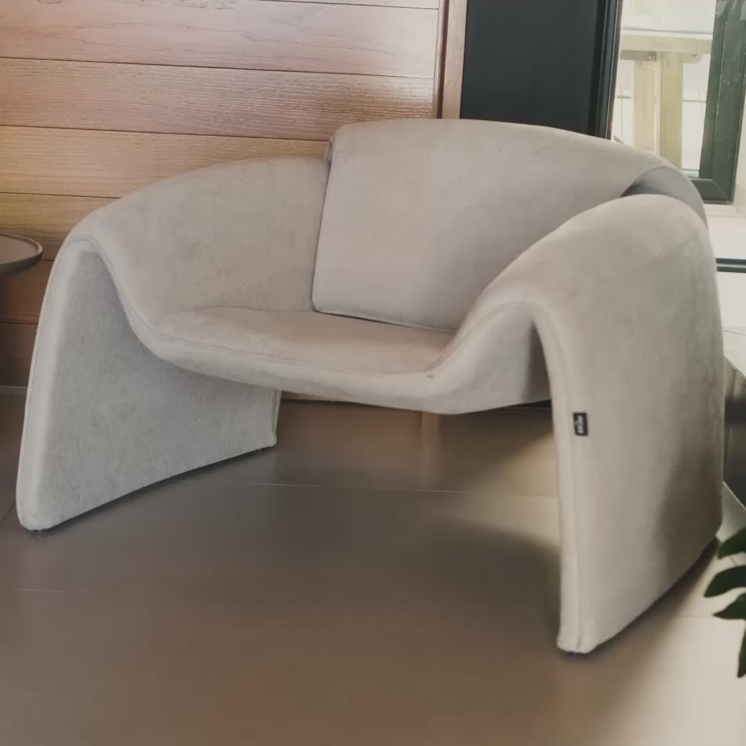 Su forma escultórica y proporciones equilibradas lo convierten en el protagonista del ambiente. Tapizado en tela de alta calidad, combina una textura suave con una estructura sólida de acero que garantiza estabilidad y durabilidad.