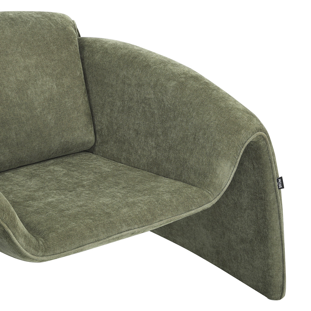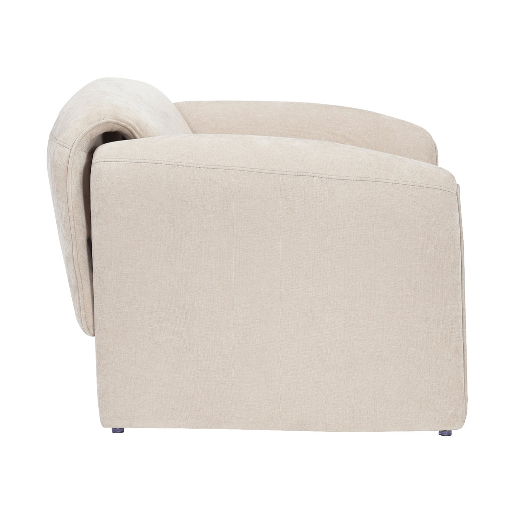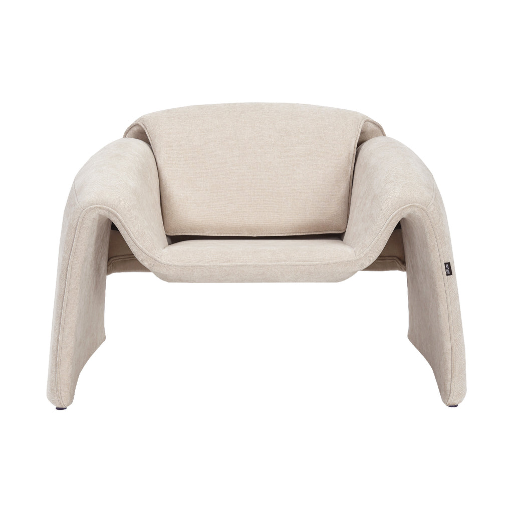 Su forma escultórica y proporciones equilibradas lo convierten en el protagonista del ambiente. Tapizado en tela de alta calidad, combina una textura suave con una estructura sólida de acero que garantiza estabilidad y durabilidad.